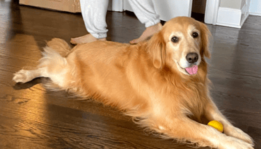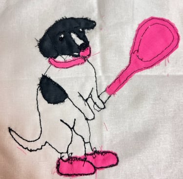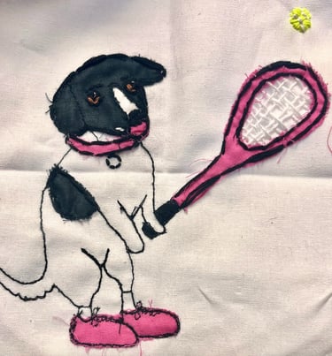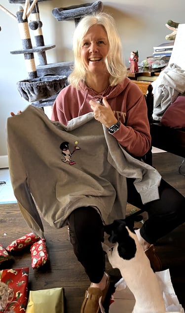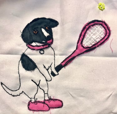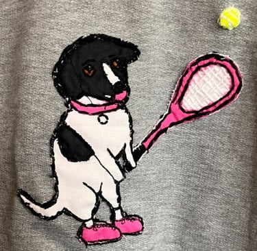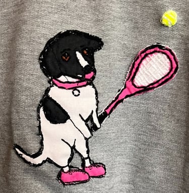 My mom loves her dog, and she loves tennis.